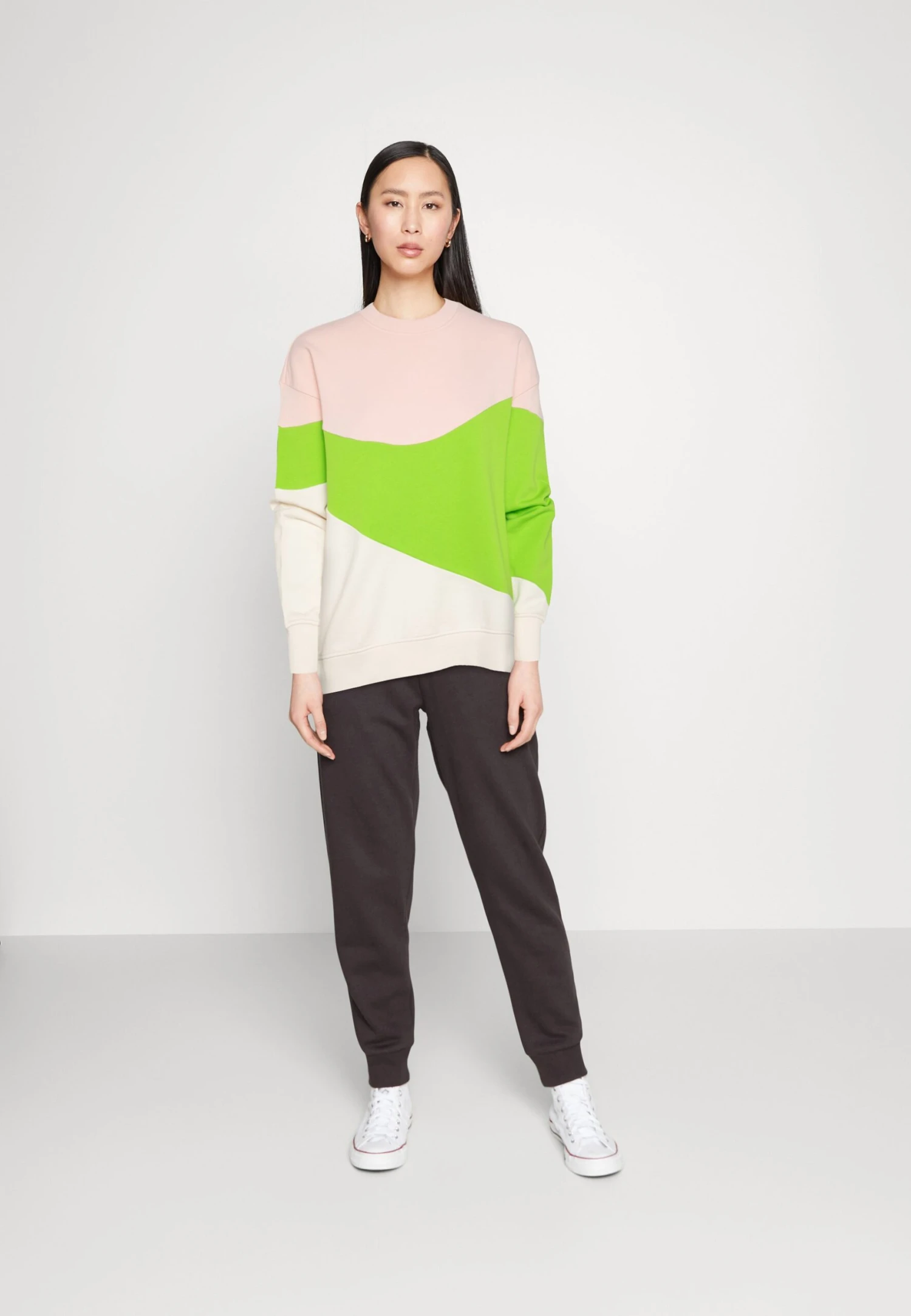 TOM TAILOR Denim Colourblock – Sweater – Rose/Green/Off-White