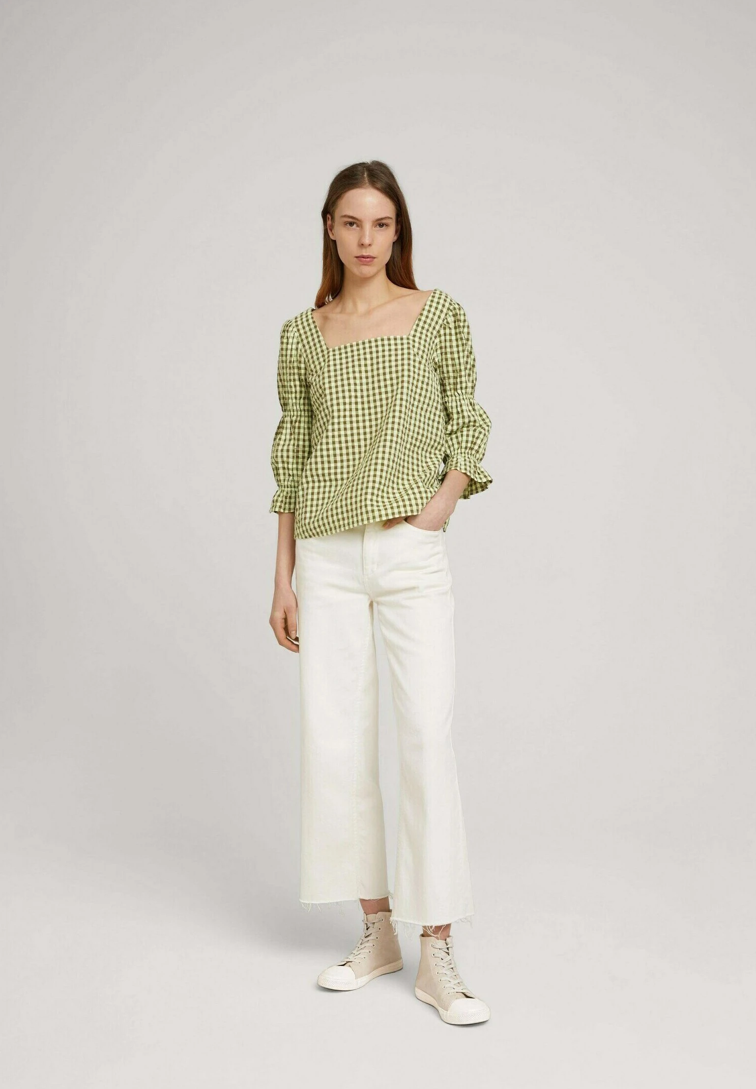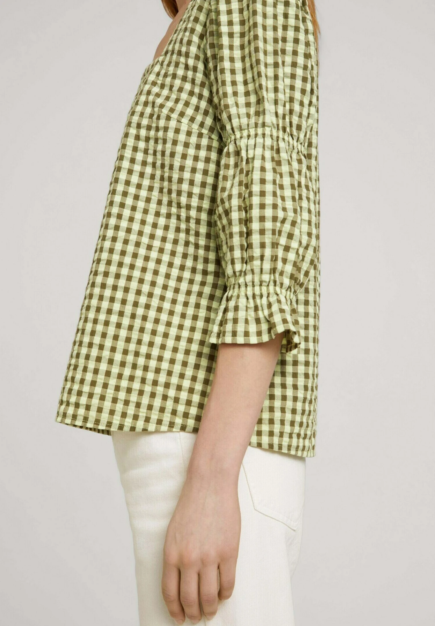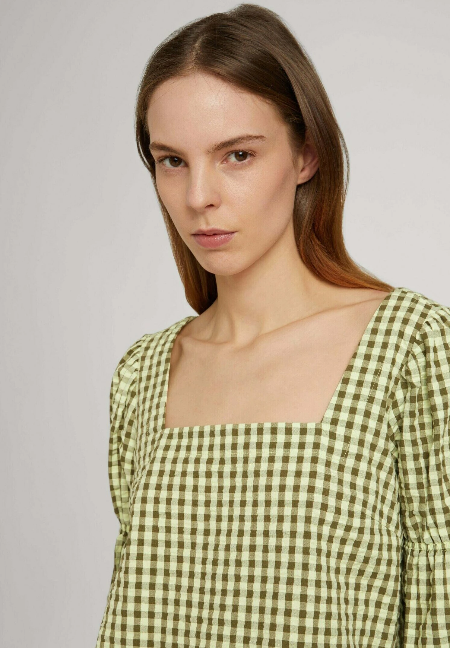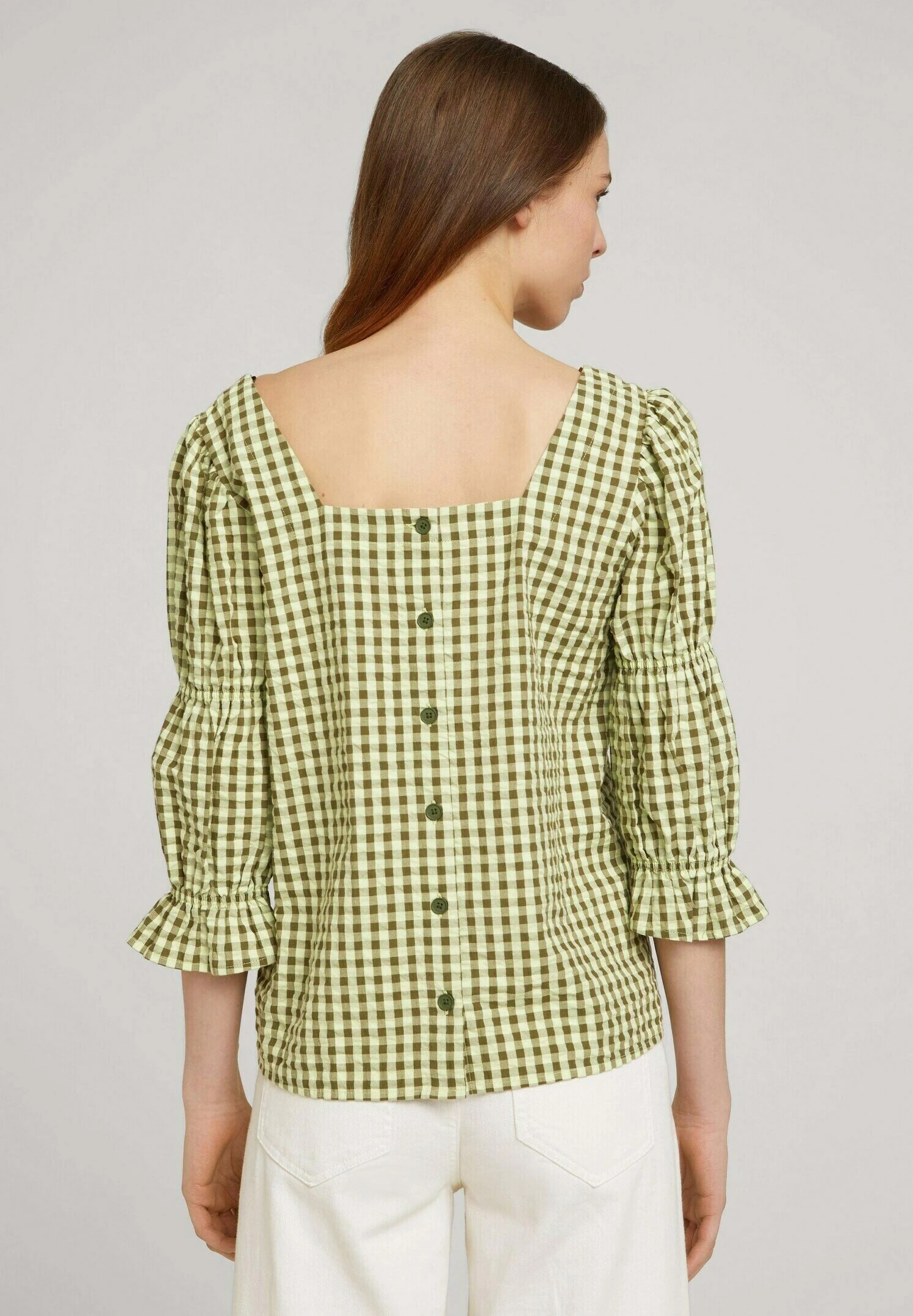 TOM TAILOR Denim Mit Carree Aussc – Blouse – Small Green Check
