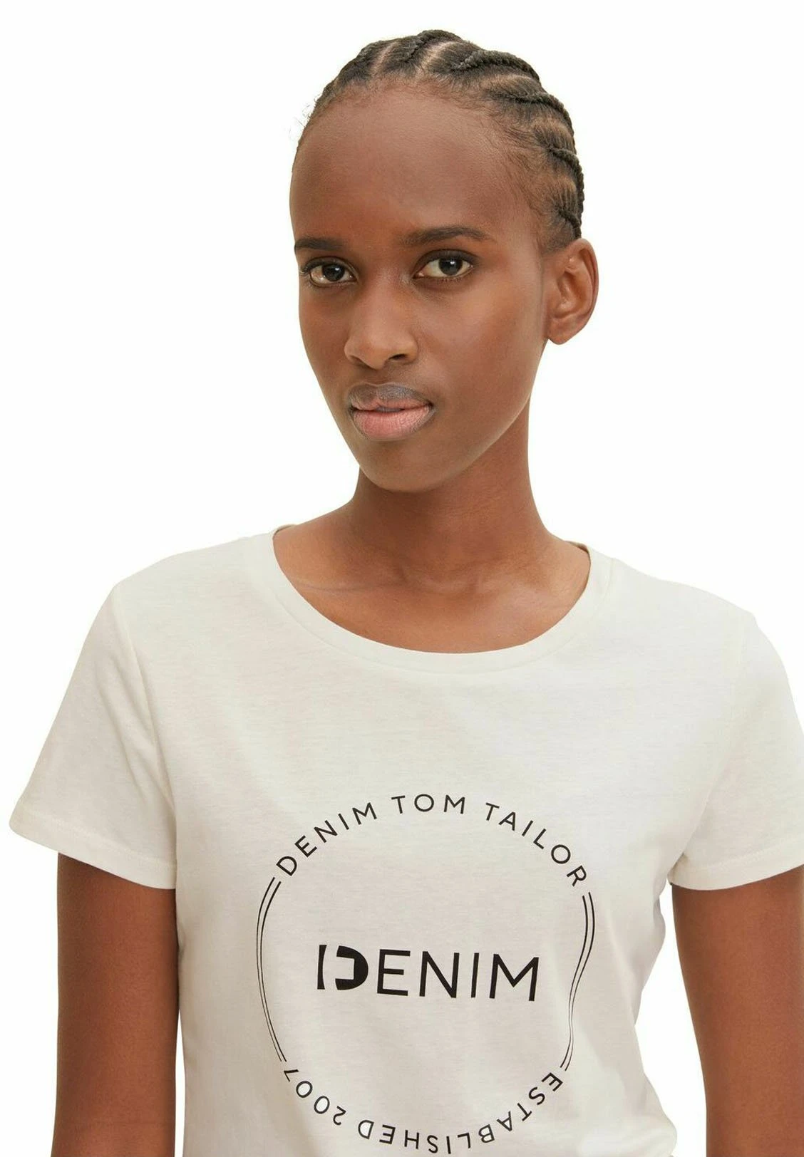 TOM TAILOR Denim Round Logo – T-Shirt Print – Gardenia White