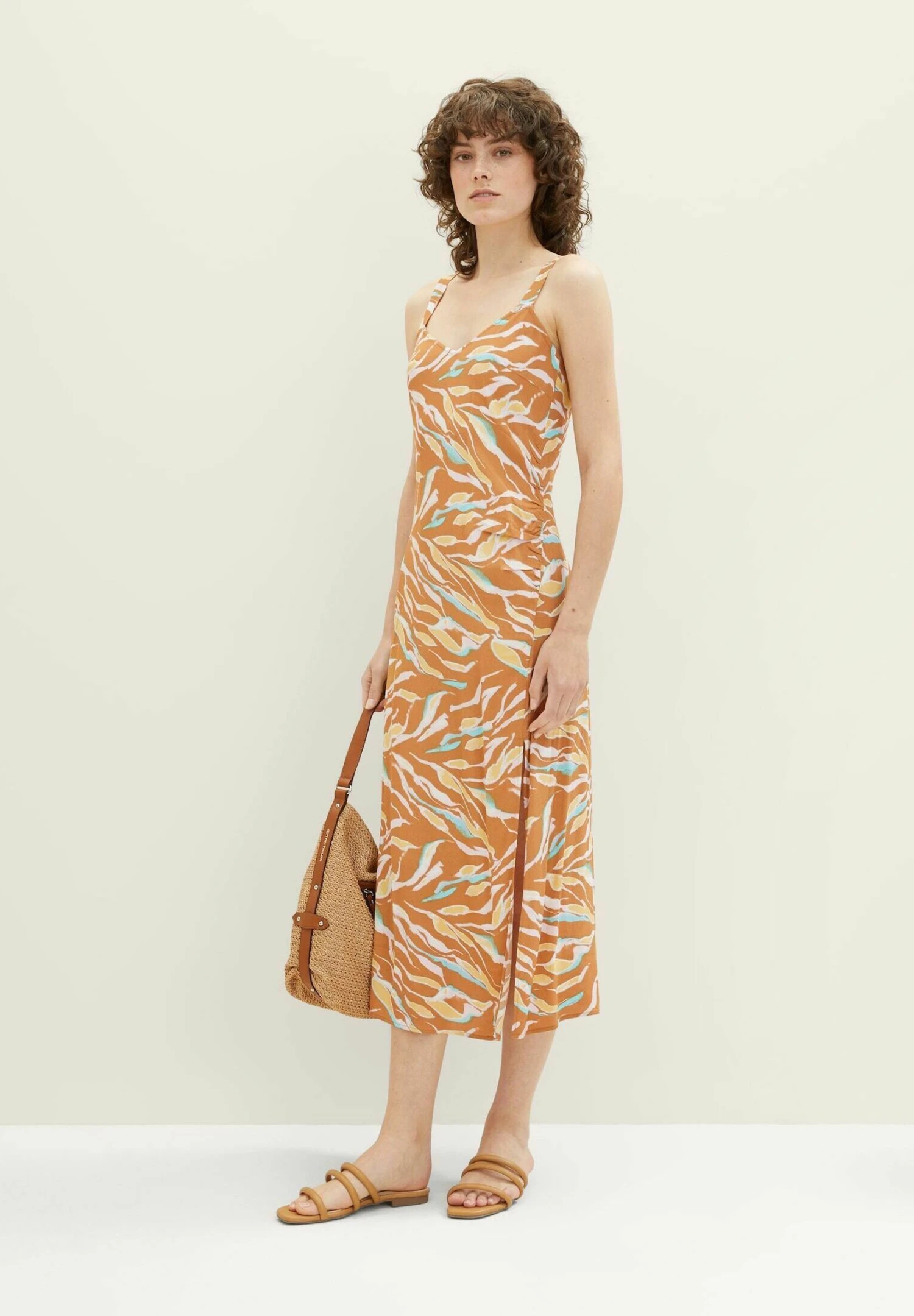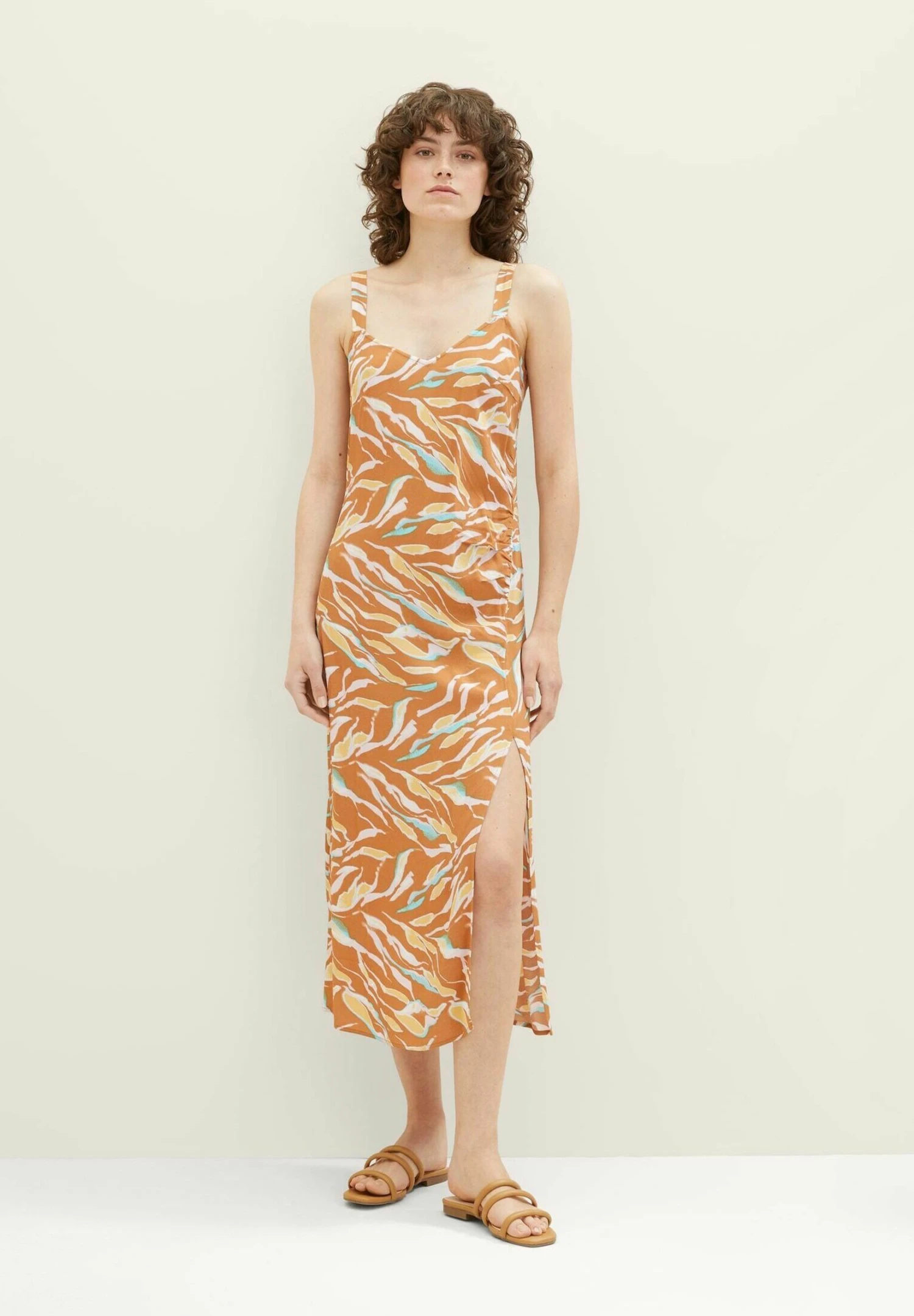 Tom Tailor Jurk – Brown Abstract Leaf Design