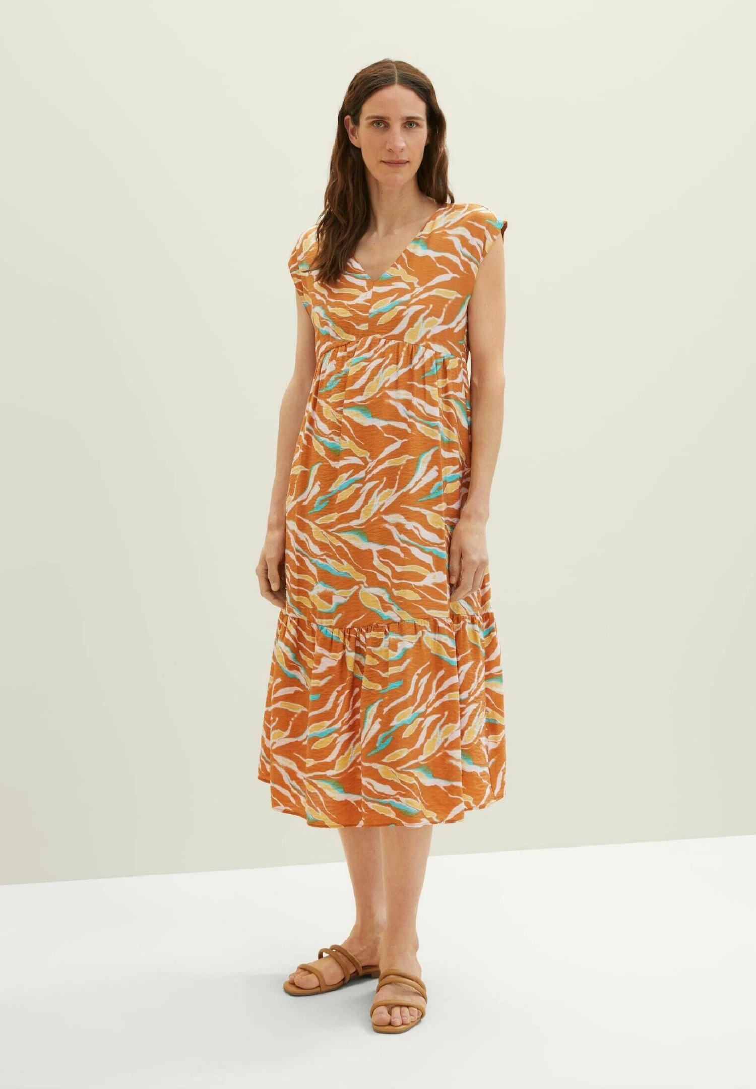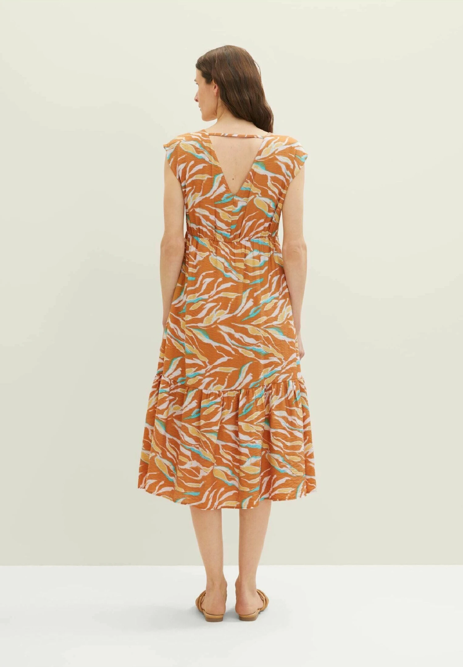 Tom Tailor Mit Allover-Print – Jurk – Brown Abstract Leaf Design