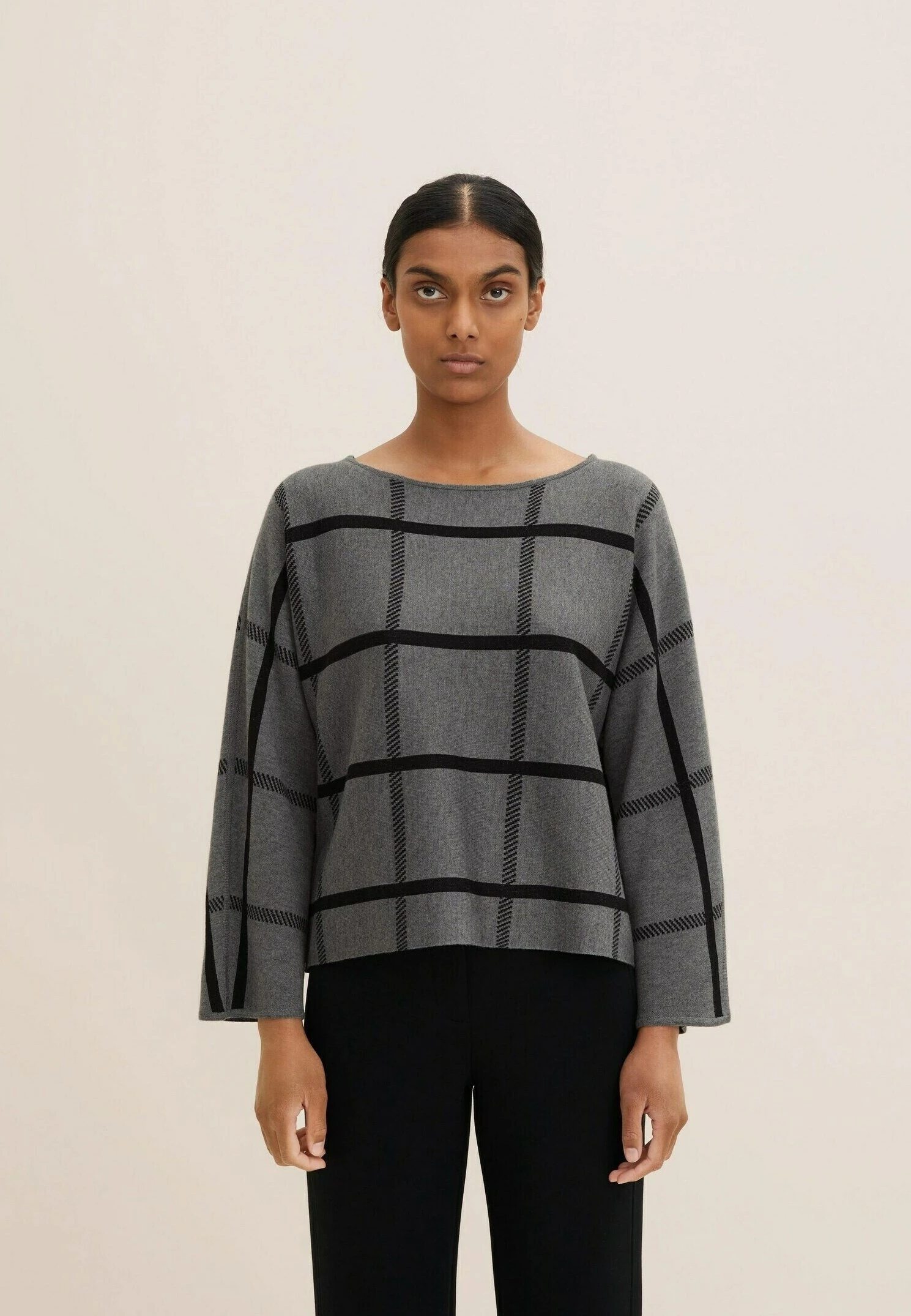 Tom Tailor Mit Fledermaus – Trui – Grey Knit Check Design