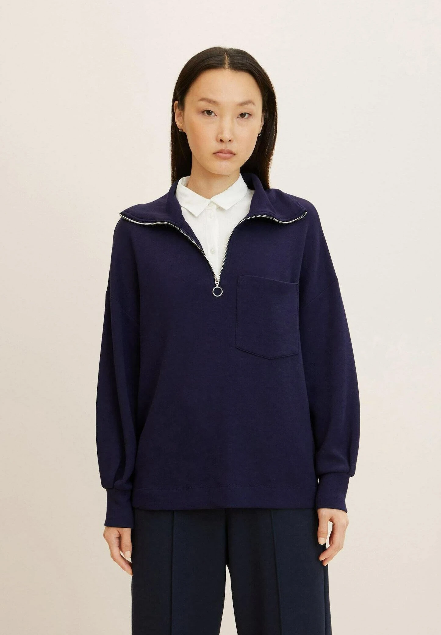 Tom Tailor Mit Troyerkragen – Sweater – Navy Midnight Blue