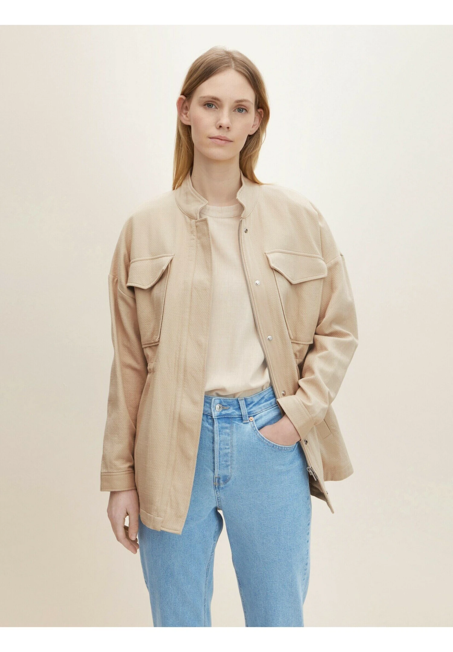Tom Tailor Regular Fit – Halflange Jas – Silver Ecru